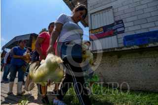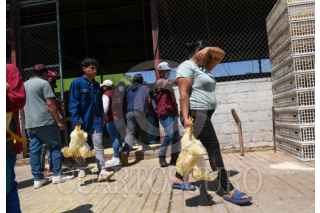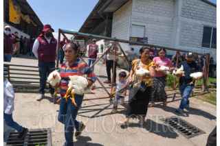 TEJUPILCO, ESTADO DE MÉXICO, 25JULIO2025.- Mujeres de la localidad El Sauz en el municipio de Tejupilco acudieron a la Granja Maxi Pollo en donde fueron entregados 1170 pollo a que fueron incautados al crimen organizado durante el Operativo Liberación, realizado en la zona sur del Estado de México, de manera anticipada se dispuso de lo incautado a favor de la población. FOTO: CRISANTA ESPINOSA AGUILAR/CUARTOSCURO.COM