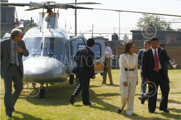 MÉXICO, D.F. 14NOVIEMBRE2007.- La secretaria de educación pública, Josefina Vasquez Mota firmó un convenio con el Club de futbol Real Madrid, en una escuela en Iztapalapa, donde llegó en helicóptero. FOTO:PAOLA HIDALGO/CUARTOSCURO.COM