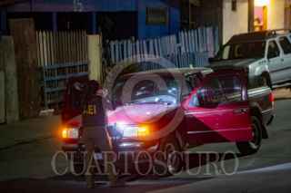 ROSARITO, BAJA CALIFORNIA, 24JULIO2025.- La noche del jueves, el agente Dorians López, de 39 años de edad, adscrito a la Policía Municipal de Rosarito, resultó lesionado por disparo de arma de fuego cuando se encontraba a bordo de su vehículo, frente a su domicilio ubicado sobre la calle San Luis Potosí, en la colonia Constitución. El oficial fue trasladado en condición estable a un hospital de la ciudad, presentando una herida en el rostro. De acuerdo con información preliminar, los agresores viajaban en al menos dos vehículos, uno de ellos descrito como una camioneta color gris. Testigos señalaron que los atacantes descendieron encapuchados y abrieron fuego directamente contra el agente, desde la esquina de su casa. En el lugar del ataque se localizaron dos armas de fuego —una corta y una larga— así como 38 casquillos percutidos de al menos tres calibres distintos: .223 (fusil de asalto tipo R), 9 mm (arma corta), y 7.62 x 39 mm (arma larga tipo “cuerno de chivo”). FOTO: CUARTOSCURO.COM