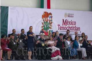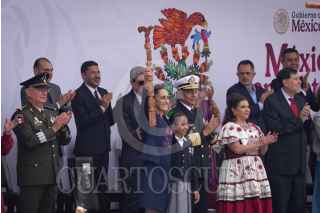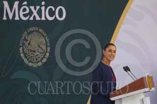 CIUDAD DE MÉXICO, 26JULIO2025.- Claudia Sheinbaum, presidenta de México, durante la Ceremonia Siete Siglos del Legado de Grandeza en el marco de la celebración de los 700 años de la fundación de Tenochtitlán en el Zócalo. FOTO: ROGELIO MORALES /CUARTOSCURO.COM