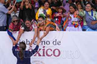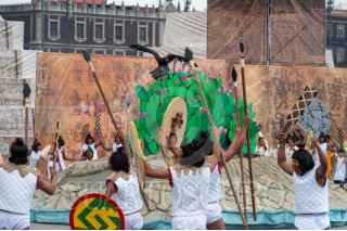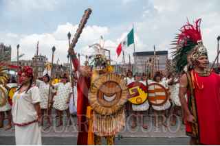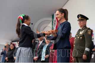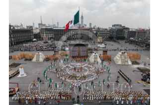 CIUDAD DE MÉXICO, 26JULIO2025.- Claudia Sheinbaum, presidenta de México, durante la representación "Siete Siglos de Legado de Grandeza de México-Tenochtitlán 1325-2025" realizada en la plancha del zócalo capitalino. FOTO: PRESIDENCIA/CUARTOSCURO.COM