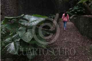 TEPOZTLÁN, MORELOS, 26JULIO2025.- Gotas de agua de lluvia escurren por una planta Oreja de elefante o malanga, planta nativa de América tropical. FOTO: MARGARITO PÉREZ RETANA/CUARTOSCURO.COM