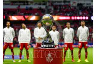 TOLUCA, ESTADO DE MÉXICO, 26JULIO2025.- La Copa Campeón de Campeones fue exhibida en el estadio Nemesio Diez previo al encuentro ante la escuadra de Tigres. FOTO: CRISANTA ESPINOSA AGUILAR/CUARTOSCURO.COM