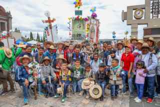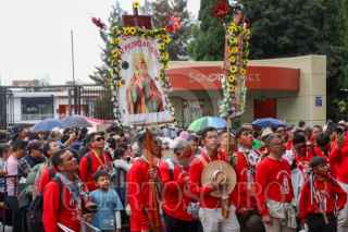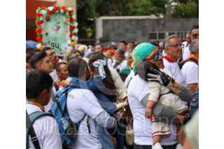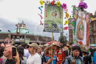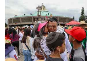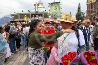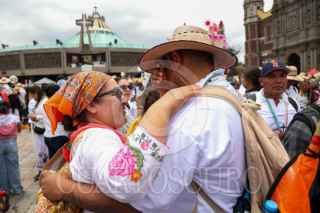 CIUDAD DE MÉXICO, 27JULIO2025.- El día de hoy llegaron un aproximado de 70 mil peregrinos de la Arquidiócesis de Querétaro, muchos de ellos de la Sierra Queretana, a la Basílica de Guadalupe. Esta peregrinación tiene como particularidad que marchan por separado hombre y mujeres. Ellas llegaron antes de las seis de la mañana y a las once presenciaron misa, mientras que los varones llegaron pasado el medio. Muchas parejas y sus hijos se reencontraron emocionados el el atrio del Templo Guadalupano. FOTO: MOISÉS PABLO/CUARTOSCURO.COM
