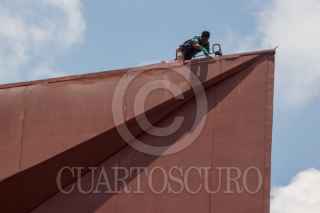 CIUDAD DE MÉXICO, 27JULIO2025.- Obrero impermeabiliza el techo del Museo y Archivo General Agrario está ubicado en la Avenida Juárez número 92, en el Centro Histórico, e cual presenta un retraso en su entrega. FOTO: MOISÉS PABLO/CUARTOSCURO.COM