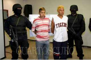MÉXICO, D.F., 14NOVIEMBRE2007.- Miguel Angel Damián Alvarado, de 21 años y Jesús Rogelio Santillan de 18 años, son miembros de una banda delictiva denominada "Los Chicanos" presuntos responsables del homicidio de Luis Miguel Sánchez Acosta de 17 años quien fue asesinado afuera de su escuela ubicada en avenida Taxqueña por robarle su celular el pasado 24 de Octubre. FOTO: PEDRO MARRUFO/CUARTOSCURO.COM