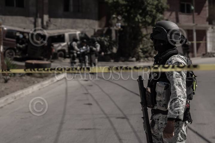 TIJUANA, BAJA CALIFORNIA, 27 DE JULIO DE 2025.- Un hombre de aproximadamente 26 años fue asesinado a balazos la tarde del domingo, cuando se encontraba a bordo de una minivan color guinda. El ataque ocurrió en la intersección de las calles Leandro Valle Sur e Independencia, en la colonia Jardines de las Cruces. La víctima, vestida con pantalón oscuro y camisa deportiva del mismo tono, quedó sin vida en el asiento del pasajero del vehículo, el cual presentaba daños visibles, como cristales rotos. Paramédicos de la Policía Municipal y de la Cruz Roja acudieron al lugar tras recibir el reporte, pero solo confirmaron el fallecimiento del hombre, quien presentaba lesiones de arma de fuego en la cabeza. Elementos de diversas corporaciones policiacas llegaron a la escena para asegurar el perímetro e iniciar las diligencias correspondientes. FOTO: OMAR MARTÍNEZ / CUARTOSCURO.COM