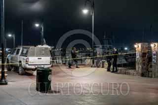 ENSENADA, BAJA CALIFORNIA, 28 DE JULIO DE 2025.- Un enfrentamiento armado registrado la noche del domingo en una embarcación, cerca del Mercado Negro de Ensenada, dejó un saldo de un hombre muerto, dos heridos y el hallazgo de varios paquetes con droga. Autoridades localizaron a los lesionados a bordo de la lancha y a un tercer individuo sin vida flotando en el agua. Los detenidos, de 61 y 58 años, fueron trasladados a un hospital bajo custodia. En la embarcación se encontraron seis paquetes con una sustancia similar a la cocaína, así como casquillos calibre .45 mm. La zona fue asegurada y la Fiscalía General del Estado quedó a cargo de la investigación. FOTOS: CHRIS NOYOLA / CUARTOSCURO.COM