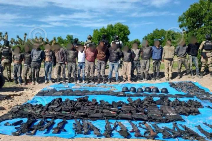 RINCÓN DE ROMOS, AGUASCALIENTES, 28JULIO2025.- 18 detenidos y el desmantelamiento de un campamento fueron el resultado de un operativo entre corporaciones federales, estatales y municipales en la zona serrana de la comunidad de Pabellón de Hidalgo, en el municipio de Rincón de Romos, el 26 de julio. Se aseguró equipo táctico, vehículos y armas de fuego. Los detenidos y lo asegurado fueron puestos a disposición de la Fiscalía General de la República y de la Fiscalía General del Estado. FOTO: EJÉRCITO / CUARTOSCURO.COM