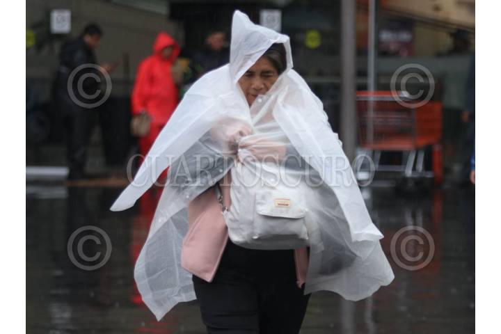 CIUDAD DE MÉXICO, 28JULIO2025.- Una mujer se protege de la lluvia con un impermeable en la alcaldía Iztapalapa. Las lluvias fuertes se extenderán hasta las 21:00 horas, en gran parte de CDMX, con una acumulación de entre 15 y 29 milímetros cúbicos de agua. FOTO: GRACIELA LÓPEZ/CUARTOSCURO.COM