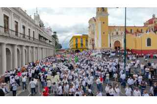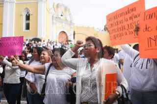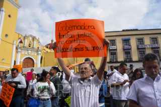 XALAPA, VERACRUZ, 28JULIO2025.- Taxistas se manifestaron por el asesinato de su compañera Irma Hernández, ocurrido en el poblado de Álamo tras ser secuestrada por un comando armado, presuntamente por negarse a pagar derecho de piso. Los conductores exigieron al gobierno encabezado por Rocío Nahle mayor seguridad para su gremio. Otra de sus demandas es el aumento de tarifas, las cuales han sido establecidas por la administración actual. Los inconformes bloquearon la calle Enríquez en Xalapa. FOTO: YERANIA ROLÓN / CUARTOSCURO.COM