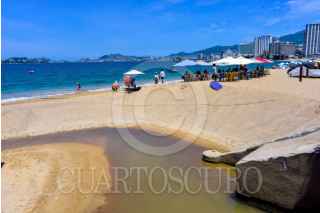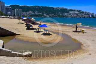 ACAPULCO, GUERRERO, 29JULIO2025.- Escurrimiento de agua con lodo en un canal pluvial que desemboca en la playa Icacos en la Zona Dorada de Acapulco, autoridades de la Comisión de Agua Potable y Alcantarillado del Municipio Acapulco. Autoridades informaron que la causa es la reparación de una fuga de agua en el fraccionamiento Costa Azul, lo que ha provocado la turbulencia del agua al mezclarse con lodo y llegar hasta el área de playa. FOTO: CARLOS ALBERTO CARBAJAL/CUARTOSCURO.COM