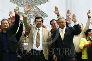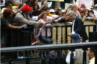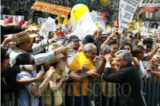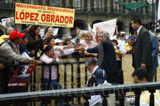 MÉXICO, D.F. 18NOVIEMBRE2007.- Andrés López Obrador a su salida de su informe de gobierno en la tercera asamblea informativa en el Zócalo captalino. FOTO: PAOLA HIDALGO/CUARTOSCURO.COM