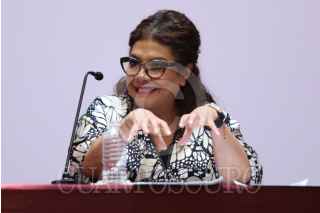 CIUDAD DE MÉXICO, 29JULIO2025.- Bertha Alcalde, titular de la FGJCDMX, durante la conferencia de este martes en el Palacio de Ayuntamiento. FOTO: DANIEL AUGUSTO/ CUARTOSCURO.COM