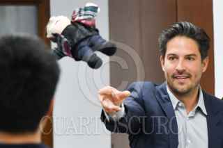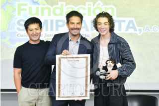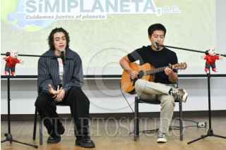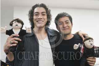 CIUDAD DE MÉXICO, 29JULIO2025.- Los cantautores Matías Gruener, y Dany Dstance, muestran "Dr. Simi" personalizados, al final de la presentación y entrega de la letra del tema "Semillas de vida" para la "Fundación Simplaneta" realizada en las instalaciones del Corporativo Grupo por un País Mejor. FOTO: MARIO JASSO/CUARTOSCURO.COM