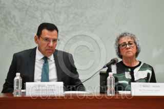 CIUDAD DE MÉXICO, 30JULIO2025.- Bertha Gómez Castro secretaría de egresos de la Secretaría de Hacienda y Crédito Público (SHCP), durante conferencia de prensa realizada en el salón de usos múltiples de Palacio Nacional en la que presentaron las finanzas públicas correspondientes al segundo trimestre de 2025. FOTO: MARIO JASSO/CUARTOSCURO.COM