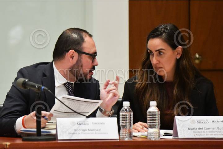 CIUDAD DE MÉXICO, 30JULIO2025.- Rodrigo Mariscal, titular de la Unidad de Planeación Económica y María del Carmen Bonilla, titular de la Unidad de Crédito Público y Asuntos Internacionales, durante conferencia de prensa realizada en el salón de usos múltiples de Palacio Nacional en la que presentaron las finanzas públicas correspondientes al segundo trimestre de 2025. FOTO: MARIO JASSO/CUARTOSCURO.COM