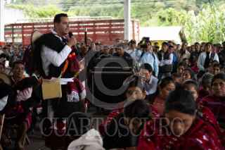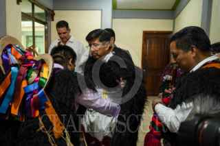 TENEJAPA, CHIAPAS, 30 JULIO 2025.- Hugo Aguilar Ortiz, ministro electo y perfilado para presidir la Suprema Corte de Justicia de la Nación, y Rodrigo Arístides Guerrero, también electo como ministro en la pasada elección del Poder Judicial, realizan una gira de agradecimiento en Los Altos de Chiapas. En Tenejapa, fueron recibidos por autoridades tradicionales, quienes les ofrecieron una ceremonia en la iglesia de la cabecera municipal. Posteriormente, se dirigieron a pie hasta la cancha pública, donde ambos ofrecieron unas palabras de agradecimiento y reconocimiento. FOTO: ISABEL MATEOS HINOJOSA / CUARTOSCURO.COM