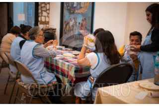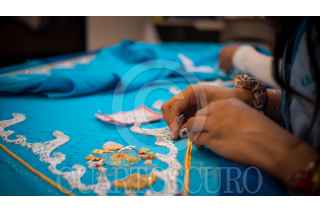 HUAMANTLA, TLAXCALA, 30 JULIO 2025.- En la Casa Museo Carito de Huamantla, un grupo de jóvenes y adultos voluntarios continúa con la confección del vestuario de la Virgen de la Caridad, una práctica que se realiza desde 1964. Este año, bajo el tema del "Año Jubilar", los participantes elaboran diseños inspirados en el mar. La actividad reúne a personas de distintas generaciones que participan en la elaboración del atuendo. En la imagen artesanas realizan el bordado. FOTO: ALAÍN HERNÁNDEZ/CUARTOSCURO.COM