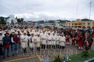SAN JUAN CHAMULA, CHIAPAS, 30 JULIO 2025.- El presidente de la Suprema Corte de Justicia, Hugo Aguilar, y el ministro electo Rodrigo Arístides Guerrero fueron recibidos con un acto simbólico de bienvenida por autoridades tradicionales y pobladores en el atrio de la iglesia principal. Posteriormente, caminaron junto a representantes de la comunidad hasta la explanada central, donde ofrecieron unas palabras a los asistentes, agradeciendo el recibimiento y destacando la importancia del diálogo con los pueblos originarios. FOTO: ISABEL MATEOS HINOJOSA/CUARTOSCURO.COM
