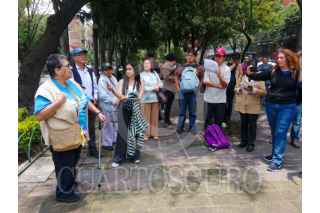 CIUDAD DE MÉXICO, 31JULIO2025.- La señora Elisa García, quien vive en avenida Álvaro Obregón, en la colonia Roma, narro a los periodistas las dificultades que tiene afrontar sobre todo los fines de semana cuando los negocios que están sobre la vialidad mencionada se llenan de extranjeros y no dejan circular de manera ágil, ya que ella ocupa un bastón. Esto fue durante la conferencia de prensa que encabezaron vecinos del Frente Ciudadano Salvemos de la Ciudad para exigirle a las autoridades que se detengan el proceso de gentrificación en colonias como la Roma, Condesa y Juárez. FOTO: MOISÉS PABLO/CUARTOSCURO.COM