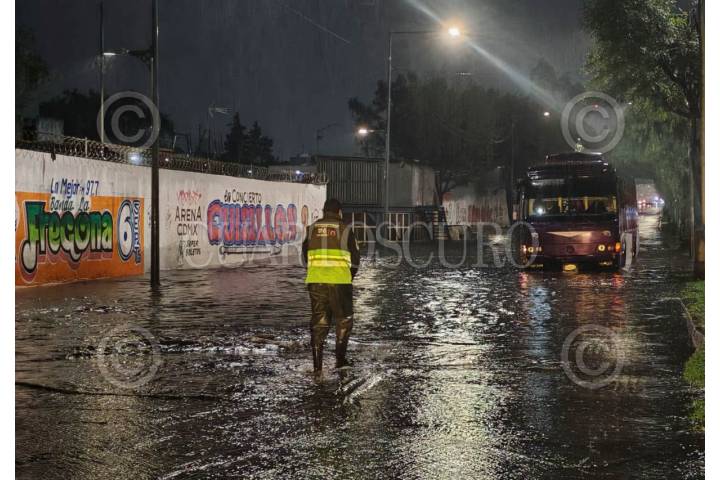 CIUDAD DE MÉXICO, 31JULIO2025.- Intensas lluvias azotaron toda la capital, lo que provocó inundaciones en vialidades primarias. Seis alcaldías fueron alertadas con semáforo en rojo por la intensidad de las lluvias, mientras que las restantes se mantuvieron en amarillo. Trabajadores del Gobierno capitalino desazolvaron puntos que estaban totalmente inundados para permitir la circulación. Se prevé que las precipitaciones continúen hasta l madrugada. FOTO: GOBIERNO DE LA CIUDAD DE MÉXICO/CUARTOSCURO.COM
