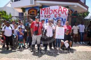 TAPACHULA, CHIAPAS, 01AGOSTO2025.- En este municipio fronterizo con Guatemala, ubicado aproximadamente a una hora en transporte público, personas migrantes y activistas se manifestaron para denunciar que la Comisión Mexicana de Ayuda a Refugiados (COMAR) estaría cobrando por realizar trámites que deberían ser gratuitos. El activista Luis Villagrán, del Centro de Dignificación Humana A.C., se reunió en el Parque Bicentenario con personas migrantes de distintas nacionalidades, quienes afirman que se les ha negado el proceso ante la COMAR y denuncian presuntos actos de corrupción en el Instituto Nacional de Migración (INM). FOTO: DAMIÁN SÁNCHEZ/CUARTOSCURO.COM
