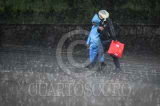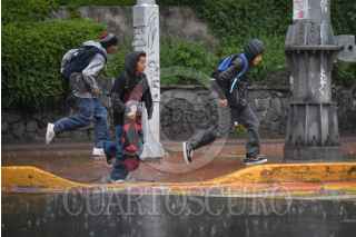CIUDAD DE MÉXICO, 01AGOSTO2025.- Un grupo de jóvenes corren para resguardarse de las fuertes lluvias registradas esta tarde en la capital del país. FOTO: MARIO JASSO/CUARTOSCURO.COM