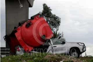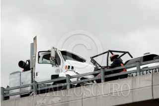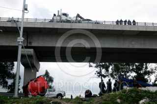 PUEBLA, PUEBLA, 01AGOSTO2025.- Dos policías estatales murieron en un accidente vial en el libramiento elevado de la autopista México-Puebla. Los elementos habían acudido al lugar par auxiliar al conductor de una pipa. FOTO: MIREYA NOVO/ CUARTOSCURO. COM