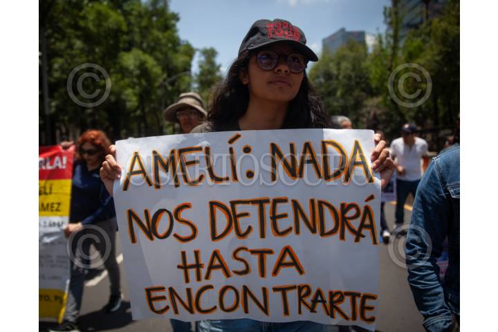 CIUDAD DE MÉXICO, 03AGOSTO2025.- Vanessa Gámez, madre de Ana Amelí García Gámez, encabeza la protesta pacífica que partió del Ángel de la Independencia rumbo al Zócalo Capitalino. FOTO: ANDREA MURCIA /CUARTOSCURO.COM