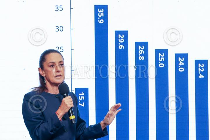 CIUDAD DE MÉXICO, 04AGOSTO2025.- Claudia Sheinbaum Pardo, presidenta de México, explicó con una gráfica cómo ha aumentado el gasto corriente en los hogares de menores recursos a partir de 2018, durante la Mañanera del Pueblo. FOTO: MOISÉS PABLO/CUARTOSCURO.COM