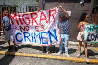 TAPACHULA, CHIAPAS, 04AGOSTO2025.- Migrantes y activistas protestaron frente a la Comisión Mexicana de Ayuda a Refugiados (COMAR). Una mujer migrante, con su pequeña hija en brazos, se unió a una manifestación para exigir al Gobierno de México que agilice los trámites de asilo y refugio. "Estoy aquí desde enero. He pasado por muchos países a pie, con hambre y sed, y llegamos hasta México buscando una solución". Varios migrantes señalaron que desde principios de año presentó su solicitud ante la COMAR, pero hasta la fecha no ha recibido ningún aviso para continuar con el proceso. FOTO: DAMIÁN SÁNCHEZ/CUARTOSCURO.COM