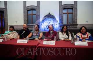 CIUDAD DE MÉXICO, 04AGOSTO2025.- Brígida Ricardo, representante de la comunidad Otomí, Aurélien Guilabert, Consejero del Huerto Roma Verde; Nelly Antonia Juárez, secretaria de Pueblos y Barrios Originarios; Ana Francis López Bayghen Patiño, secretaria de Cultura de la Ciudad; Arlen Rodríguez y Susana López Flores, especialista de arraigo de comunidades indígenas durante el primer foro “Arraigo Local: Identidad, memoria, cultural y vida comunitaria”, en el Museo de la Ciudad de México. FOTO: ANDREA MURCIA /CUARTOSCURO.COM