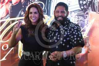 CIUDAD DE MÉXICO, 04AGOSTO2025.- Los cantantes Lucero y Pancho Barraza ofrecieron una conferencia de prensa en la que anunciaron su nuevo tema "Todo o nada", realizada en el RoofTop. FOTO: GRACIELA LÓPEZ/CUARTOSCURO.COM