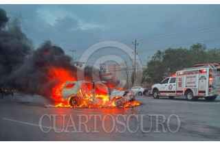 REYNOSA, TAMAULIPAS, 04AGOSTO2025.- Ernesto Vázquez Reyna, delegado de la Fiscalía General de la República (FGR) en Tamaulipas, murió la tarde de este lunes en un ataque directo perpetrado sobre la avenida Hidalgo, frente al hotel Engrei, alrededor de las 18:00 horas. En videos que circulan en redes se ve la camioneta en llamas cuando llega otra camioneta a rematar a los tripulantes. FOTO: CORTESÍA/CUARTOSCURO.COM