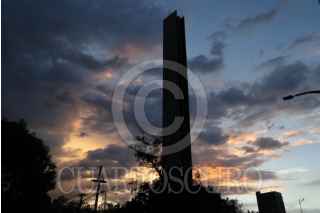 CIUDAD DE MÉXICO, 04AGOSTO2025.- El atardecer perfila silueta de la Estela de Luz, o también conocida como la suavicrema por la gente, este monumento fue realizado para conmemorar el bicentenario de la Independencia Mexicana y Centenario de la Revolución, en el período del ex Presidente, Felipe Calderón, y está ubicado en el acceso principal del Bosque de Chapultepec. FOTO: MOISÉS PABLO/CUARTOSCURO.COM