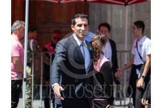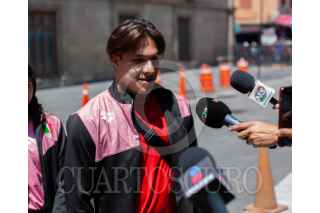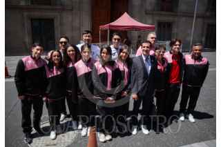 CIUDAD DE MÉXICO, 05AGOSTO2025.- La delegación de clavadistas mexicanos a su salida de Palacio Nacional donde sostuvieron una reunión con la Presidenta Claudia Sheinbaum. Las y los atletas llegaron acompañados de su entrenadora y por el titular de la CONADE, Rommel Pacheco, presidente de la Federación Mexicana de Clavados, y medallista olímpico, Fernando Platas. FOTO: ANDREA MURCIA /CUARTOSCURO.COM