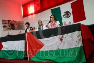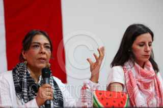 CIUDAD DE MÉXICO, 05AGOSTO2025.- Dolores Pérez Lazcarro, integrante de Global Movement to Gaza; y Patricia Luévano, coordinadora internacional del Movimiento Global a Gaza, ofrecieron una rueda de prensa para hablar sobre la iniciativa humanitaria de llevar ayuda a la Franja de Gaza en doce embarcaciones, y convocaron a la sociedad civil a sumarse a este esfuerzo ya que señalaron que hay miles de niños con peligro de morir de hambre. También invitaron a ciudadanos que estén interesados en formar parte de las flotillas se pueden inscribir en las cuentas oficiales del movimiento. Dieron a conocer que le delegación mexicana está conformada por activistas, periodistas, artistas, médicos, estudiantes y voluntarios, esto durante el encuentro con medios de comunicación y gente interesa en el tema que se llevó a cabo en el Club de Periodistas. FOTO: MOISÉS PABLO/CUARTOSCURO.COM