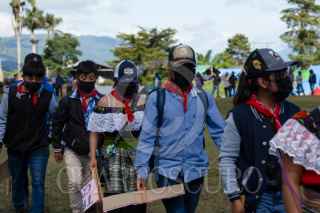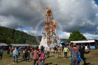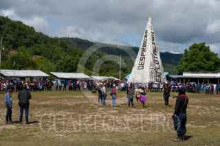 ALTAMIRANO, CHIAPAS, 05AGOSTO2025.- Se llevó a cabo el tercer día del Encuentro Resistencias y Rebeldías “Algunas partes del Mundo”, en el Semillero de la Comandanta Ramona. Jóvenes de distintas regiones zapatistas presentaron una obra de teatro en la que, a través de varias escenas, reflexionaron sobre errores cometidos dentro de la organización y cómo estos los han llevado a cuestionar las pirámides de poder del sistema capitalista. Al finalizar la obra, el comandante Moisés encabezó la destrucción simbólica de la “pirámide”, señalando que esta estructura destruye la organización comunitaria y violenta tanto a las personas como a la madre tierra. FOTO: ISABEL MATEOS HINOJOSA/CUARTOSCURO.COM
