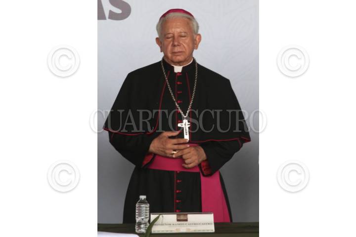 CUERNAVACA, MORELOS, 06AGOSTO2025.- Instalación del Consejo de Paz y Justicia Cívica del Estado de Morelos. Encabezó el evento Rosa Icela Rodríguez titular de la Secretaria de Gobernación y la gobernadora Margarita González Saravia. En la imagen, el obispo de Cuernavaca, Ramon Castro y Castro. FOTO: MARGARITO PÉREZ RETANA/CUARTOSCURO.COM