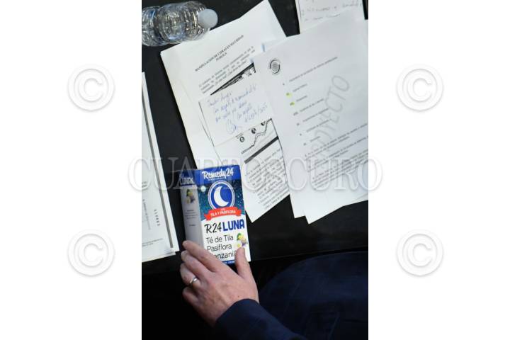 CIUDAD DE MÉXICO, 06AGOSTO2025.- Nota que Gerardo Fernández Noroña, presidente de la mesa directiva, envío junto al té de tila, que previamente Ricardo Anaya, senador del PAN, le había hecho llegar, durante la sesión ordinaria de la Comisión Permanente del Congreso de la Unión, en donde se discute el dictamen que ratifica a Claudia Pavlovich, embajadora de México en Panamá y Francisco Javier Díaz de León, embajador de México ante Turquía. Además de la discusión del punto de acuerdo que exhorta al senador Adán Augusto López Hernández, solicite licencia inmediata a su cargo y se separe de toda función parlamentaria, a fin de ponerse a disposición de las autoridades competentes y enfrentar las denuncias y señalamientos en su contra por el caso de Hernán Bermúdez Requena, ex secretario de Seguridad de Tabasco quien ha sido vinculado como presunto líder de "La Barredora". FOTO: MARIO JASSO/CUARTOSCURO.COM