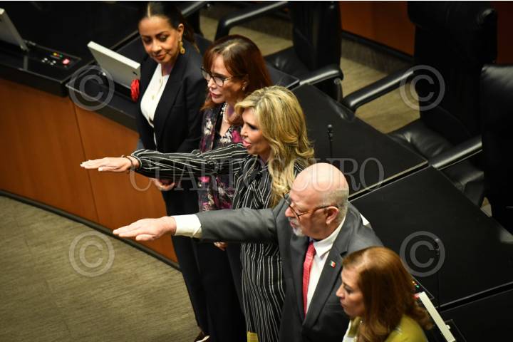 CIUDAD DE MÉXICO, 06AGOSTO2025.- Toma de protesta de Claudia Pavlovich, como embajadora de México en Panamá y de Francisco Javier Díaz de León, embajador de México ante Turquía, durante la sesión ordinaria de la Comisión Permanente del Congreso de la Unión. FOTO: MARIO JASSO/CUARTOSCURO.COM