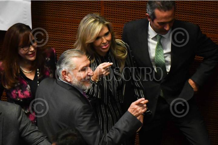 CIUDAD DE MÉXICO, 06AGOSTO2025.- Adán Augusto López, senador de Morena, junto a Claudia Pavlovich, nueva embajadora de México en Panamá y de Francisco Javier Díaz de León, durante la sesión ordinaria de la Comisión Permanente del Congreso de la Unión. FOTO: MARIO JASSO/CUARTOSCURO.COM