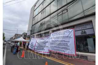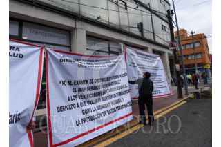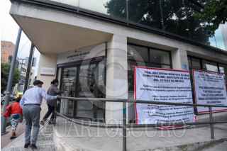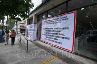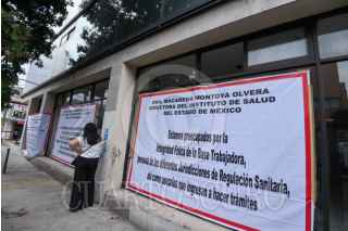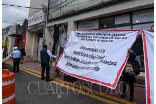 TOLUCA, ESTADO DE MÉXICO, 06AGOSTO2025.- El edificio que alberga la Coordinación de Regulación Sanitaria y Comisión para la Protección Contra Riesgos Sanitarios de la Secretaría de Salud tiene mantas en las inmediaciones en donde los trabajadores denuncian el peligro en el que se encuentran por el mal estado de este edificio, ubicado en la avenida Morelos esquina Calle Josefa Ortiz de Domínguez en la ciudad de Toluca, trabajan bajo protesta y se encuentran preocupados por su integridad física debido que el edificio que ocupan no cumple con las garantías de seguridad, existen gritas en paredes, escaleras y vidrios, poniendo en riesgo a trabajadores y usuarios, piden a las autoridades del ISEM tomen cartas en el asunto, ya que a pesar de varias denuncias no les han echo caso. FOTO: CRISANTA ESPINOSA AGUILAR/CUARTOSCURO.COM