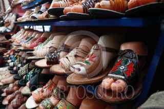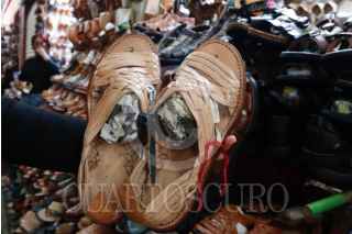 OAXACA DE JUÁREZ, OAXACA, 07AGOSTO2025.- Artesanos oaxaqueños continúan elaborando sus productos de manera artesanal y con materiales de la región, pese a las múltiples imitaciones que realizan países como China y Estados Unidos. La más reciente apropiación cultural de calzado originario de Oaxaca y Michoacán la realizó el diseñador estadounidense Willy Chavarría de la mano de Adidas, al lanzar los huaraches Slip On Oaxaca, que se inspiran principalmente en la silueta de los huaraches Pachuco de Michoacán y los huaraches de Villa Hidalgo Yalalag en la Sierra Norte Oaxaca. El gobierno de Oaxaca exigió esta semana frenar la comercialización del calzado y aseguró que iniciará procedimientos legales contra el diseñador y Adidas por plagio y apropiación cultural. En el mercado Benito Juárez artesanos afirmaron que cada día es una batalla para vender el calzado tradicional, pues algunos clientes se niegan a pagar entre 200 y 400 pesos por calzado elaborado a mano, lamentaron que empresas globales comerciales productos “inspirados” en siluetas tradicional por miles de dólares y sin valorar el trabajo artesanal que se ha preservado de generación en generación. FOTO: CAROLINA JIMÉNEZ/CUARTOSCURO.COM