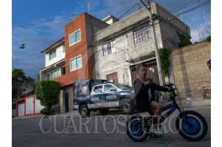 LOS REYES LA PAZ, ESTADO, MÉXICO, 07AGOSTO2025.- Un niño en bicicleta y con un helado en la mano pasa frente a la casa donde se encontró sin vida al niño Fernando de cinco años. Esto luego de supuestamente ser apartado de sus padres por una deuda de mil pesos con prestamistas de la zona. FOTO: ROGELIO MORALES /CUARTOSCURO.COM