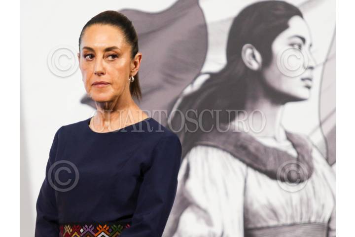 CIUDAD DE MÉXICO. 08AGOSTO2025.- La Presidenta, Claudia Sheinbaum Pardo; en la mañanera del pueblo y en el salón Tesorería del Palacio Nacional. FOTO: VICTORIA VALTIERRA/CUARTOSCURO.COM