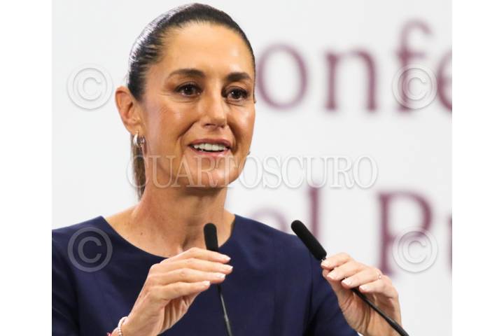 CIUDAD DE MÉXICO. 08AGOSTO2025.- La Presidenta, Claudia Sheinbaum Pardo; en la mañanera del pueblo y en el salón Tesorería del Palacio Nacional. FOTO: VICTORIA VALTIERRA/CUARTOSCURO.COM