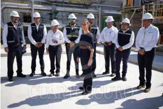 MANZANILLO, COLIMA, 09AGOSTO2025.- Claudia Sheinbaum, presidenta de México, durante el recorrido de supervisión de la nueva fase de la Central Eléctrica de Ciclo Combinado “General Manuel Álvarez Moreno”, de la Comisión Federal de Electricidad, la cual ayer inició operaciones su primera turbina. FOTO: PRESIDENCIA/CUARTOSCURO.COM
