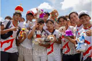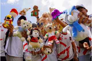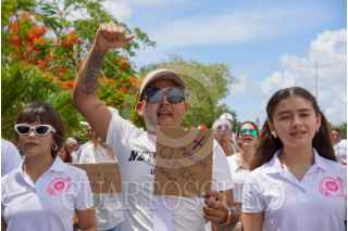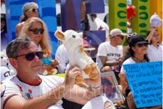 CANCÚN, QUINTANA ROO, 10AGOSTOO2025.- Habitantes de Cancún vestidos de blanco y portando muñecos de peluche se unieron a la marcha nacional "Queremos Medicina" que partió de la Glorieta del Ceviche hasta el Palacio Municipal de Benito Juárez, como muestra de apoyo a pacientes con cáncer. Los muñecos fueron un obsequio para quienes enfrentan está enfermedad, como muestra de apoyo y solidaridad con los pacientes. FOTO: ELIZABETH RUIZ/CUARTOSCURO.COM